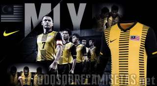 La camiseta nueva titular, a ser estrenada en la edición 2010 de los Juegos Asiáticos, mantiene el estilo a rayas amarillas y negras que Nike viene aplicando estos años para el seleccionado malayo. Este estilo se basa en las camisetas de hace décadas atrás, y simbolizan las rayas de un tigre, apodo del equipo. Para este diseño, se aplican las mangas en negro, al igual que el cuello tipo V. Al centro predomina el amarillo, con los bastones negros ahora estilizados en un formato de líneas horizontales interrumpidas. Además, el símbolo de la Federación va reemplazado por la bandera Nacional sobre el corazón, con el logo de Nike del lado opuesto en negro al igual que los números, centrados y un poco más abajo.