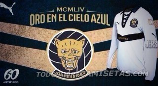 El equipo de la máxima casa de estudios de México, los Pumas de la UNAM, está pronto a celebrar su 60 aniversario y Puma no podía dejar pasar esta magnífica oportunidad, asi que volveremos a ver este año una camiseta especial para los universitarios. Esta vez nos encontramos con una camiseta que se recuerda un poco al template visto con la selección Uruguaya hasta hace apenas unos meses, completamente blanca con una gran V azul cruzando el pecho y el antiguo escudo del Club Universidad en lugar del actual puma del pajarito Andrade. Esta camiseta se venderá en edición limitada a 1954 piezas. Este puede ser el último movimiento especial de la marca alemana con el club, ya que su contrato vence al final de la temporada y parece ser seguro que cambiarán de sponsor técnico para el torneo apertura.