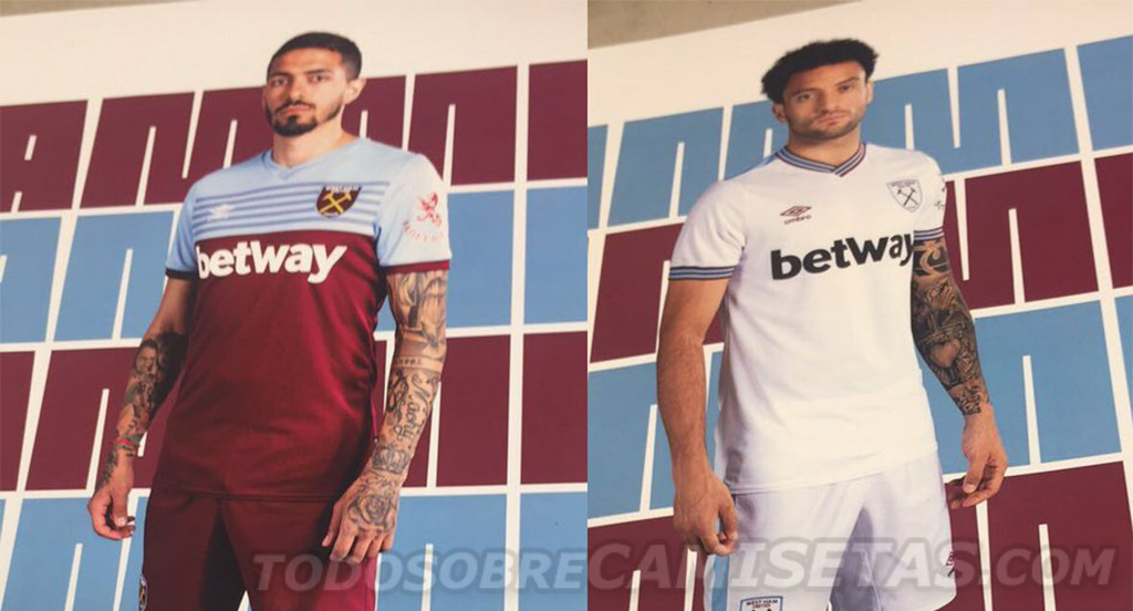 Los nuevos modelos Umbro de West Ham parecen seguir una línea clásica, teniendo el local la ya tradicional disposición de colores rojo y celeste, incorporándose esta vez una zona en la parte superior en el segundo color, que parece inspirado por un modelo de hace décadas. Para el modelo visitante, que seguro gustará a los fans, los del London Stadium vestirán un sencillo diseño en blanco, donde el cuello, de tipo V, y el remate de las mangas, se pintan de sendas líneas rojas y celestes. Ambos modelos se completan con shorts y medias de los mismos colores.